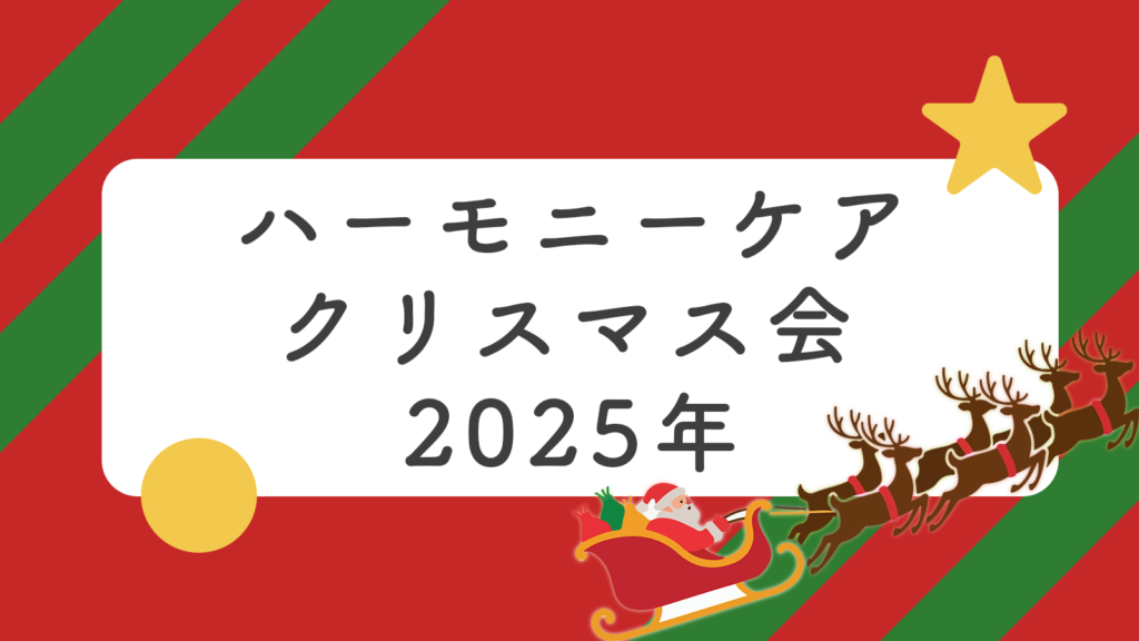 ハーモニーケア クリスマス会2025を開催しました✨ 2025.12.25 管理者ブログ メリークリスマス✨管理者のハーモニーらいむです。今年は、ハーモニーケア(放課後等デイサービス)、ハーモニージョブズ(生活介護)、ハーモニーポッシブル(就労断続支援B型)でクリスマス会を行いました。みんなでバターケーキ食べました。美味しかったです。ジョブズではクリスマスの創作活動も行いました。ありがとうサンタさん。